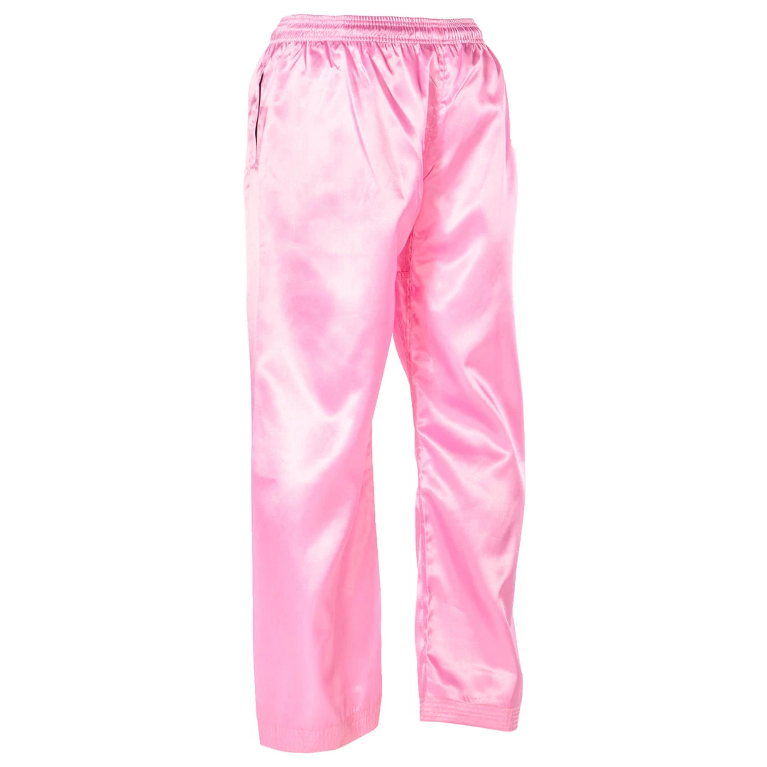 These 6 oz. light weight karate pants come with side pockets and are made of 100% polyester satin and feature an elastic drawstring waist. Available in 3 silky soft color options and sizes raning from xsmall to xlarge.