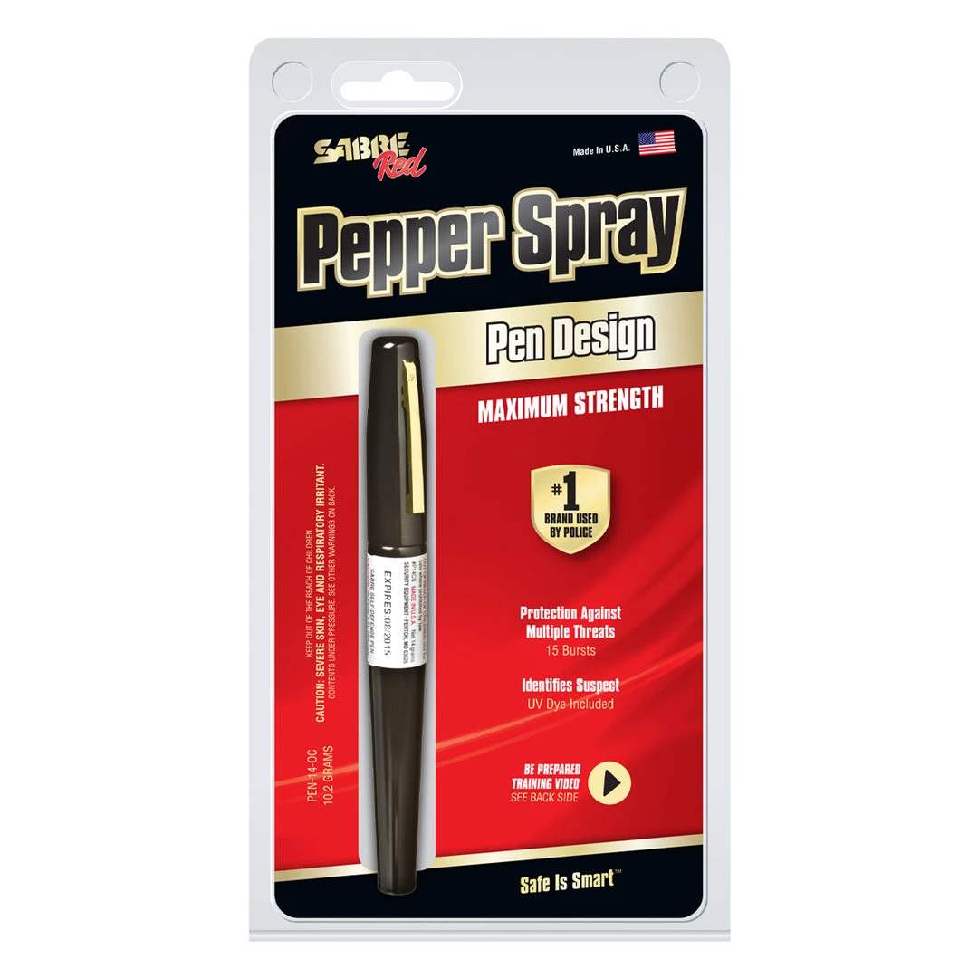 Suprise your attacker with this handy self defense pen loaded with Super Tear Gas and Red Pepper Spray. Remove cap to fire. Easy to conceal in a pocket or purse. Looks like a real pen. Practical, positive protection. Sabre contains a unique formula of CS Military Tear Gas, Red Pepper, and an ultra violet dye for suspect identification. CS Military Tear Gas is an irritant which causes a severe burning sensation in the eyes, tearing, coughing and difficulty in breathing. CS Military Tear Gas is so effective that it was chosen in 1959, and still is today, the number one riot control agent of the US> Armed Forces! Sabre’s CS Tear Gas and Red Pepper concentration is the strongest allowed by law.This item cannot be shipped to the following states: AK, CA, HI, IL, MA, MN, NV, NY, WI, DC.