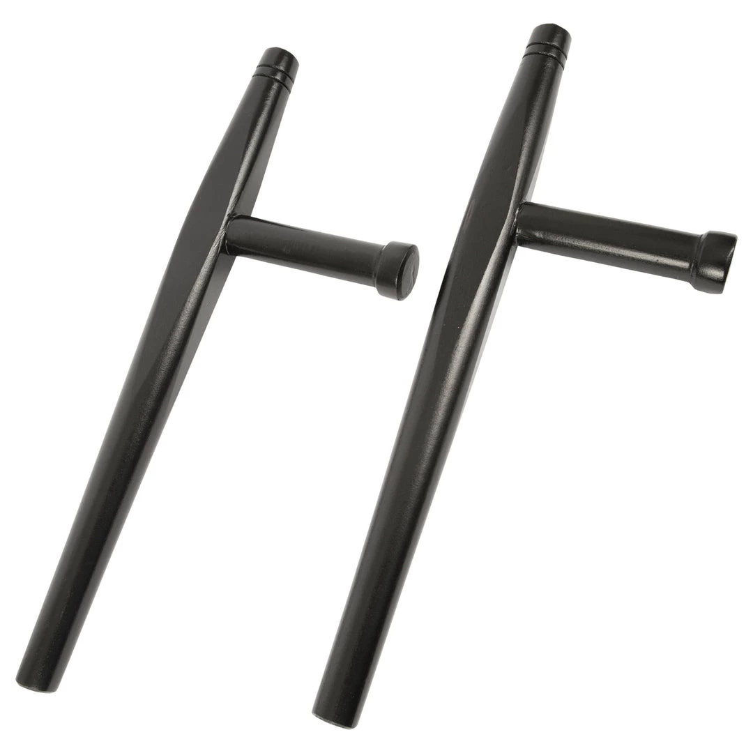 Great for performing kata! Made of a quality beechwood, our tonfas are rounded and taper at the ends. Available in 4 different lengths. A tonfa should extend 1” beyond the elbow for the best defense. Black finish. Sold as a pair.