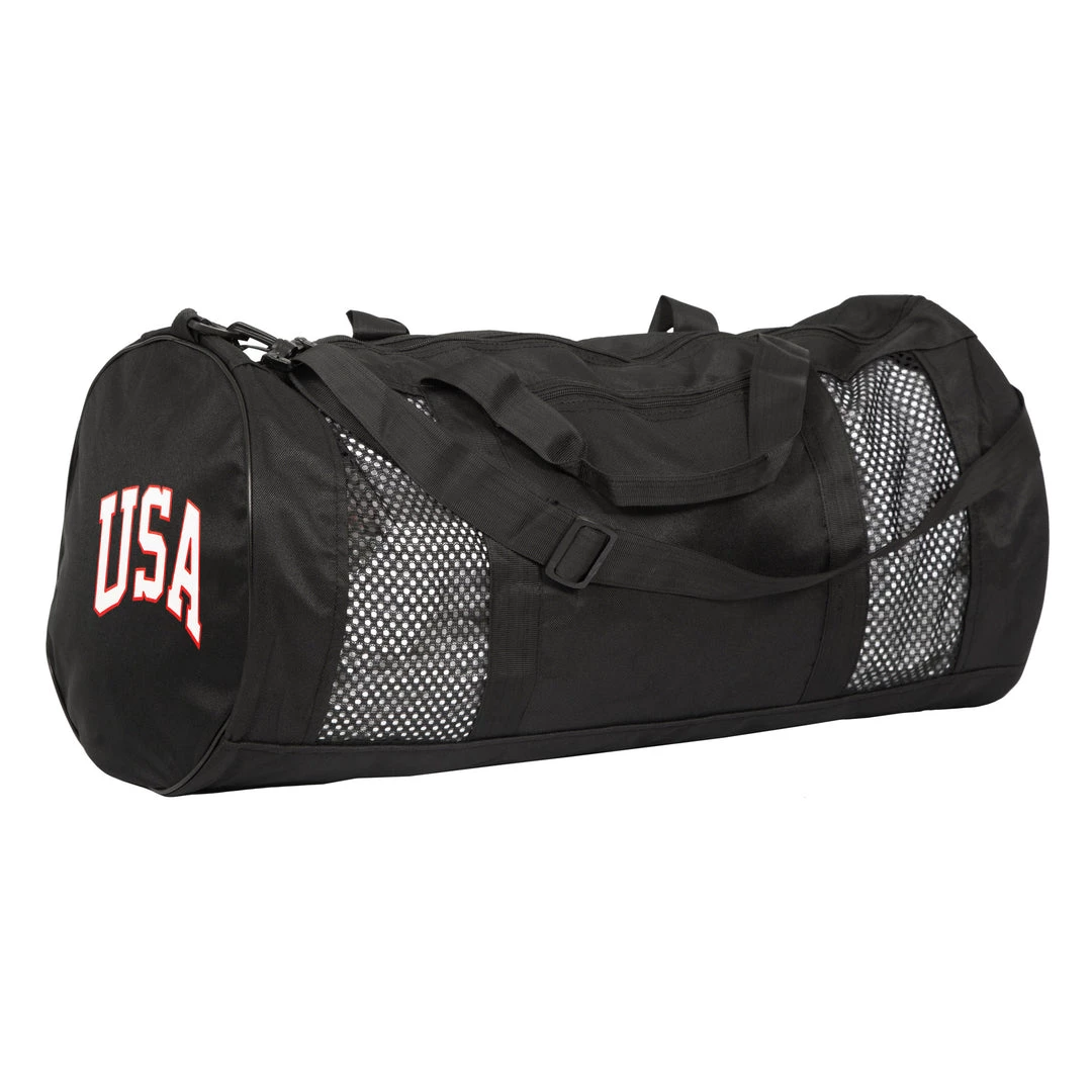 This 22” x 12” x 12” bag is constructed with Ultra Channeling Ventilationâ„¢ mesh fabric to help your gear ”breathe”. The end panels and bottom are made of polyester twill, as well as the zippered front pocket. Features a zippered closure, two handles and a removable, adjustable shoulder strap. End panels are either solid black or screen printed with one of 4 designs.