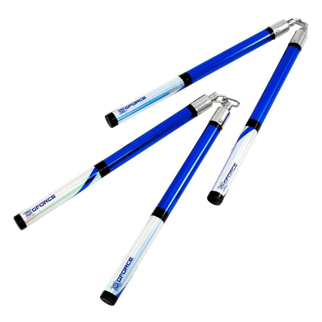 The premier brand for martial arts tournaments is G-FORCE!! These chucks are made of ultra-light wood and feature the new "Swirl" design. Built for demonstration only. Not recommended for fighting, for the nunchaku may be damaged upon contact with another object. Nunchakus are 11-1/2" long and have a 3/4" diameter. A 2.75" long 3-link chain connects each pair of chucks. Sold in sets of two pair. Made in the USA.