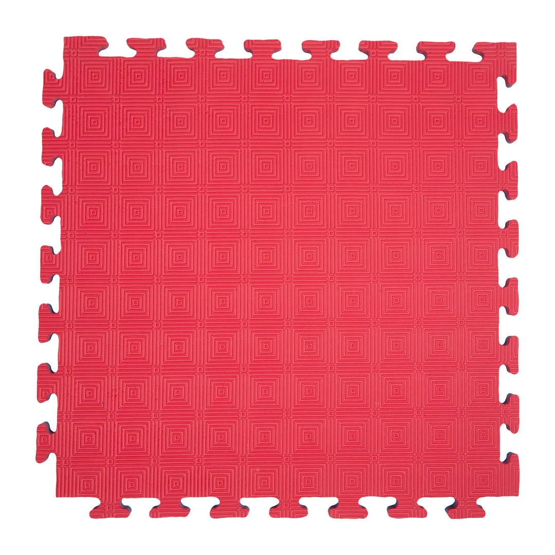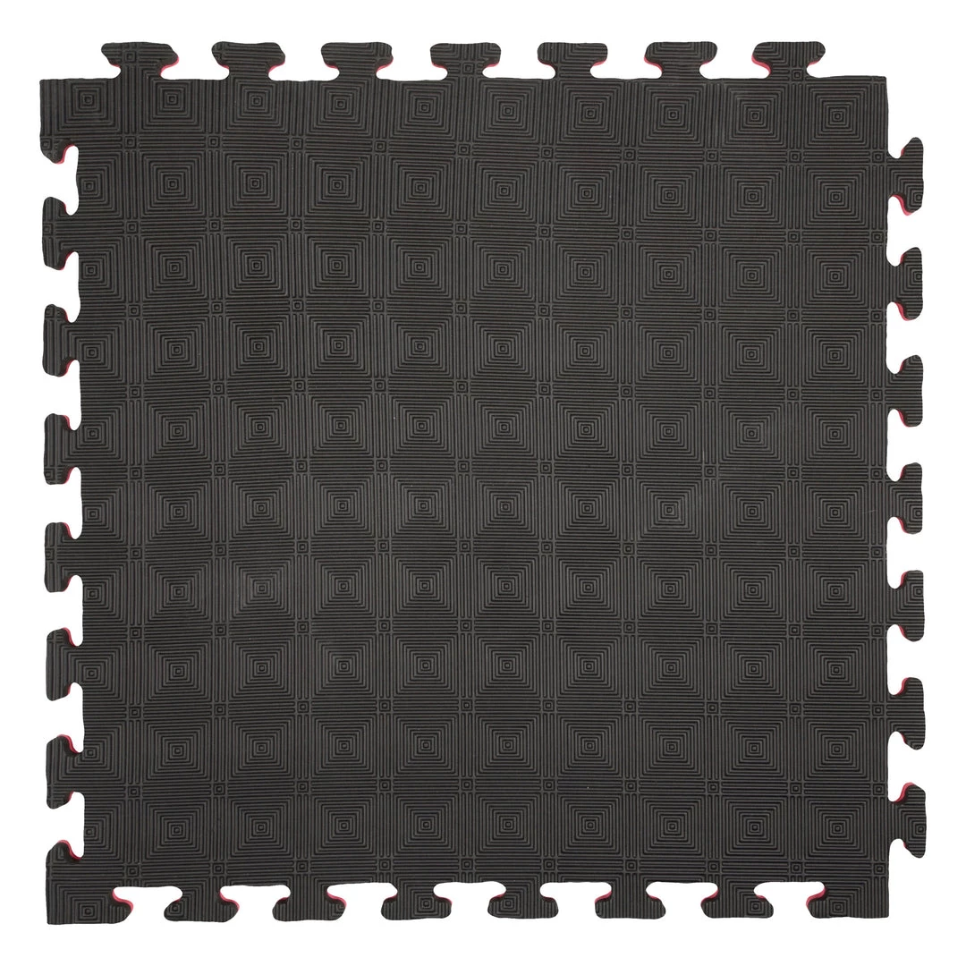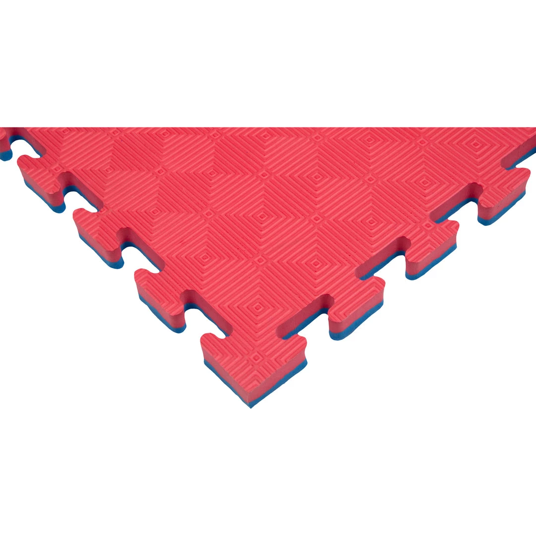 Switch up your floor color or design with these two-sided mats!Great for daycares, gyms, and trade shows. Each side is a different color to allow you to change-up your floor color or customize your designs. Made of ethylene vinyl acetate foam with a textured finish for better traction. Each mat weighs1 lb. and measures 19" x 19" x 7/8". This mat may come with an interlocking edge strip that can be attached to provide a clean edge to the mat. Available in reversible black/red.Additional shipping charges apply to this item due to its size and/or weight.