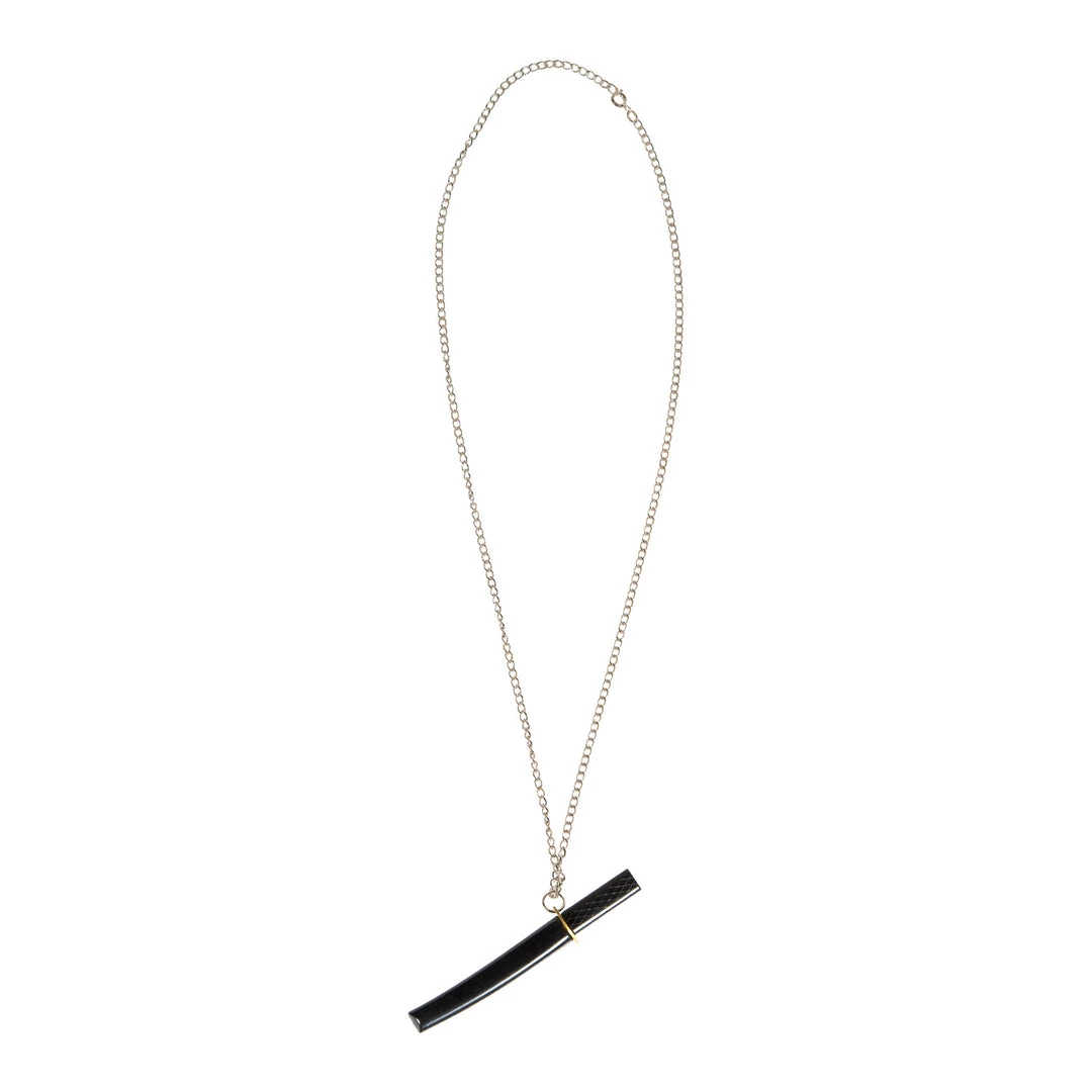 Now you can wear your favorite weapon. Choose from either a sai, sword or nunchaku on a durable silver colored chain. 3 1/2"