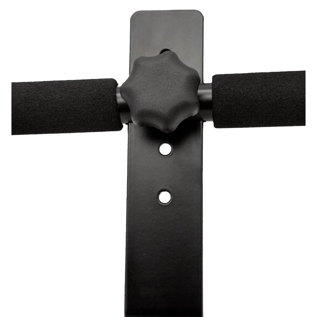 The perfect way to keep your feet in place while doing sit-ups.This bar attaches to most doors or desks without the use of tools. Simply slide bar under furniture or door and lock into place. Made from a sturdy metal with foam padding for better comfort for feet or hands. Bar can also be used as a handgrip for doing leg lifts. And it’s small enough to take to work or on vacation. You’ll never be without your workout!