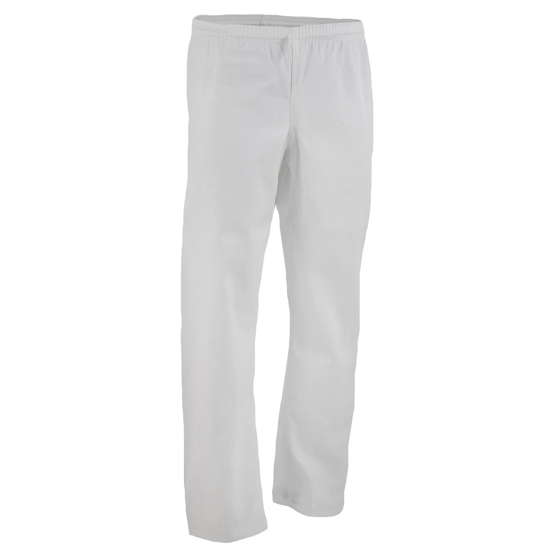 This easy care, permanent press fabric is woven from a perfect blend of 55% cotton and 45% polyester creating a comfortable lightweight 6 oz. uniform. Featuring Ultra Channeling Ventilationâ„¢ for breathability. Available in 4 great colors (black, blue, red and white), each set contains a jacket, pants and a white belt. 6 oz. uniform has an elastic drawstring waistband.